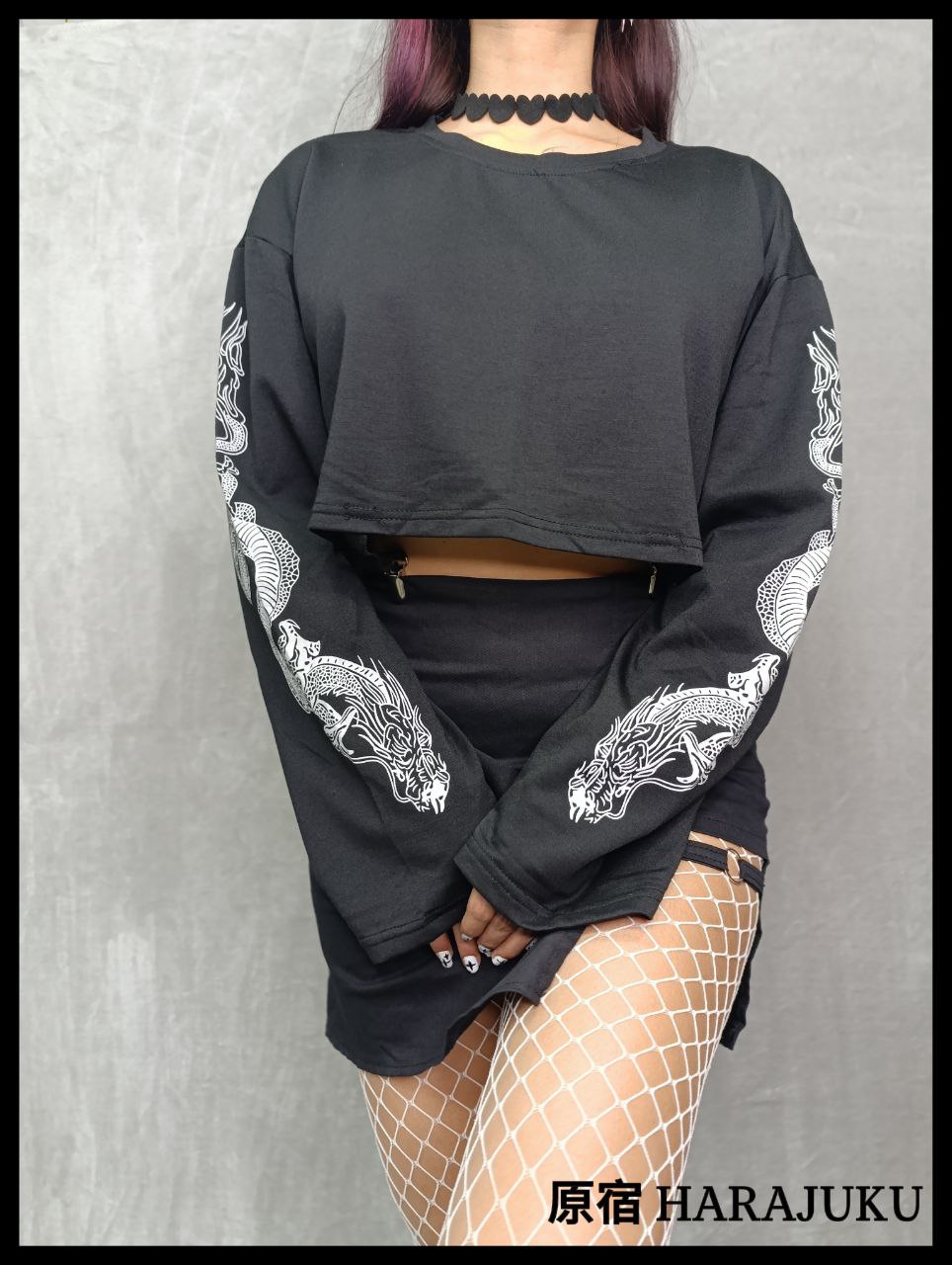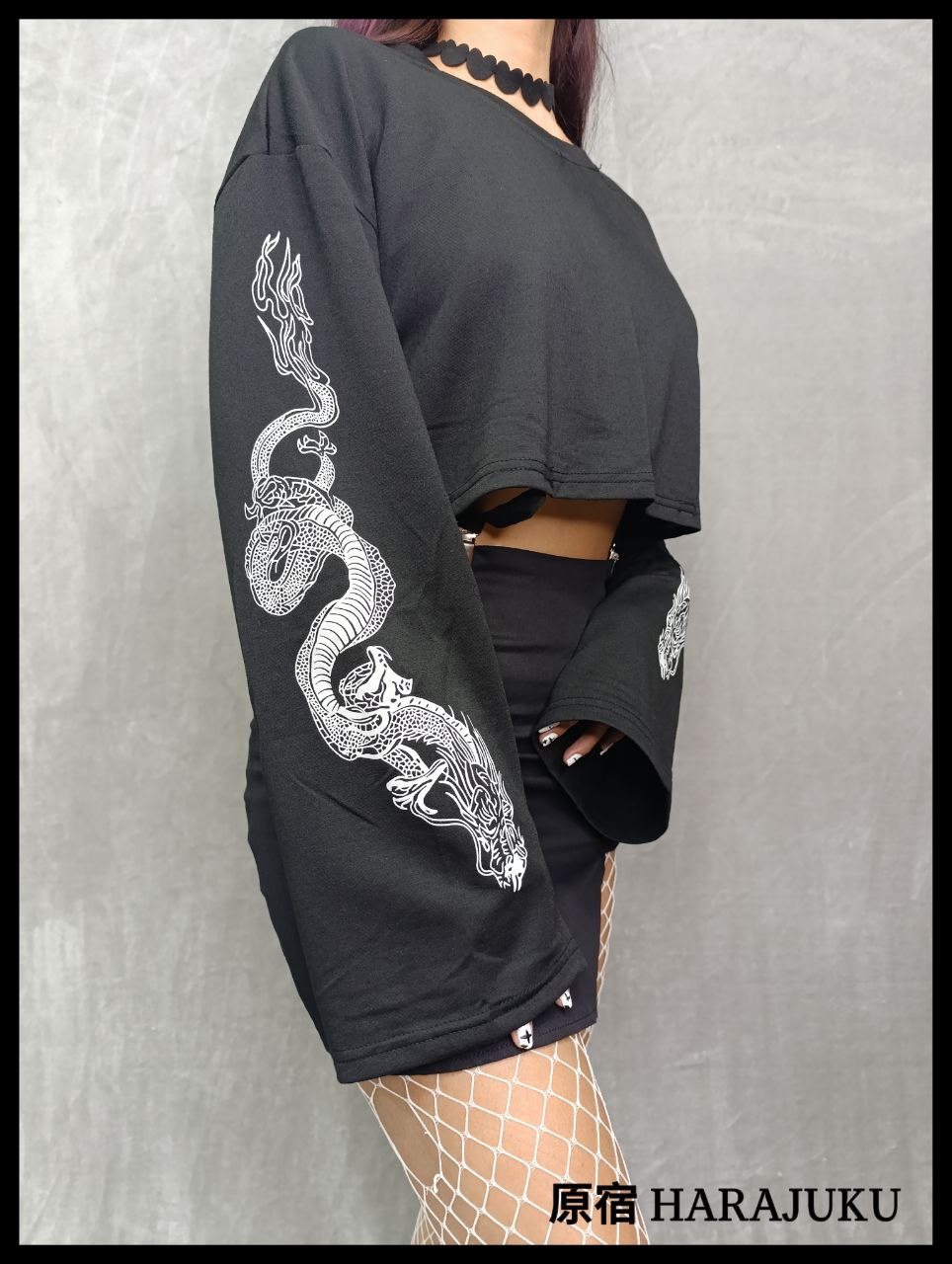/ Sweater crop top manga larga con estampado de dragon estilo Harajuku